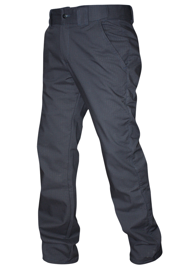 Pantalón en corte recto sin pinzas, bolsas delanteras en diagonal, bolsas traseras de vivo.