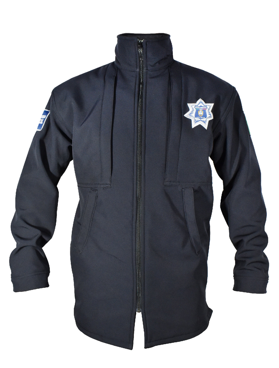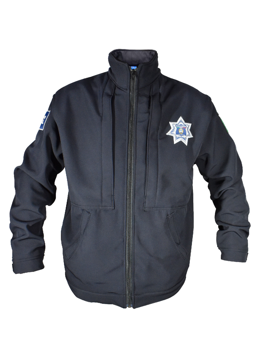 Chamarra en manga larga tipo casual, con dos bolsas de vivo y bolsas portadocumentos.