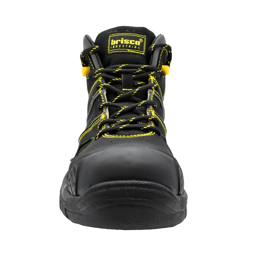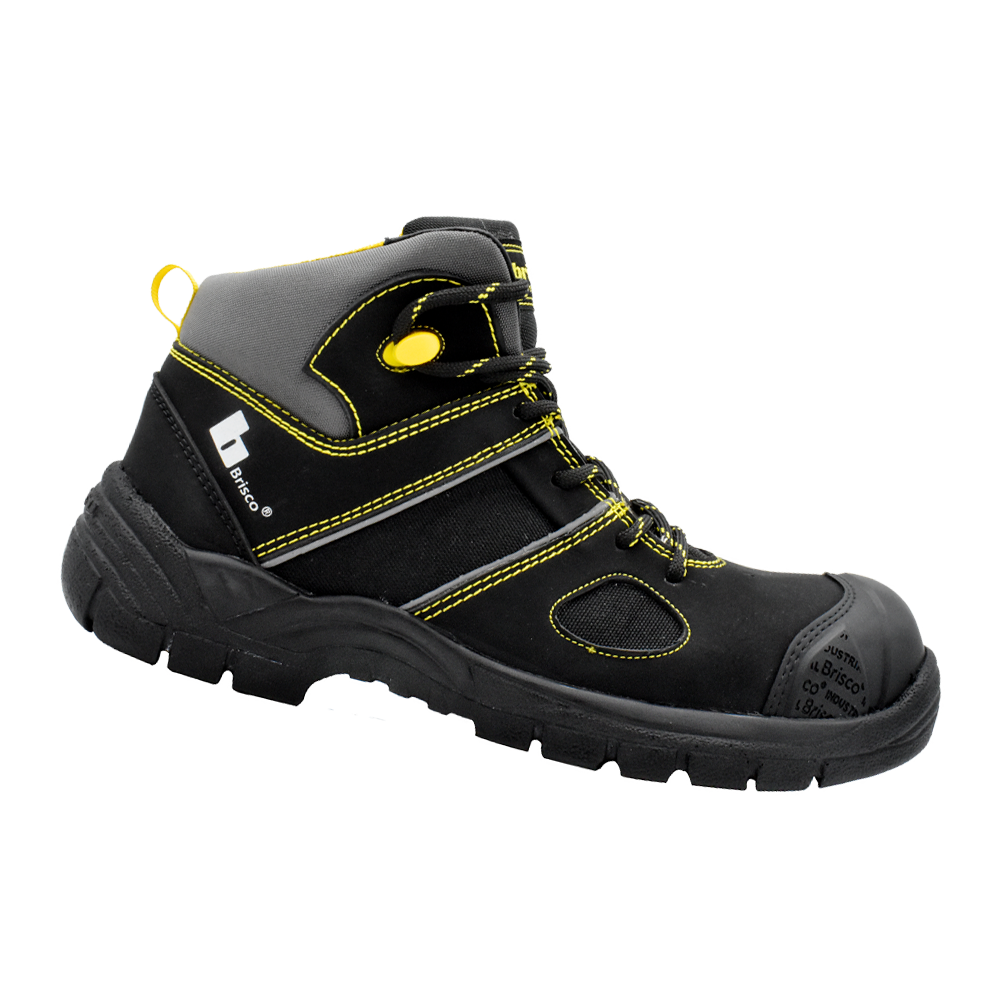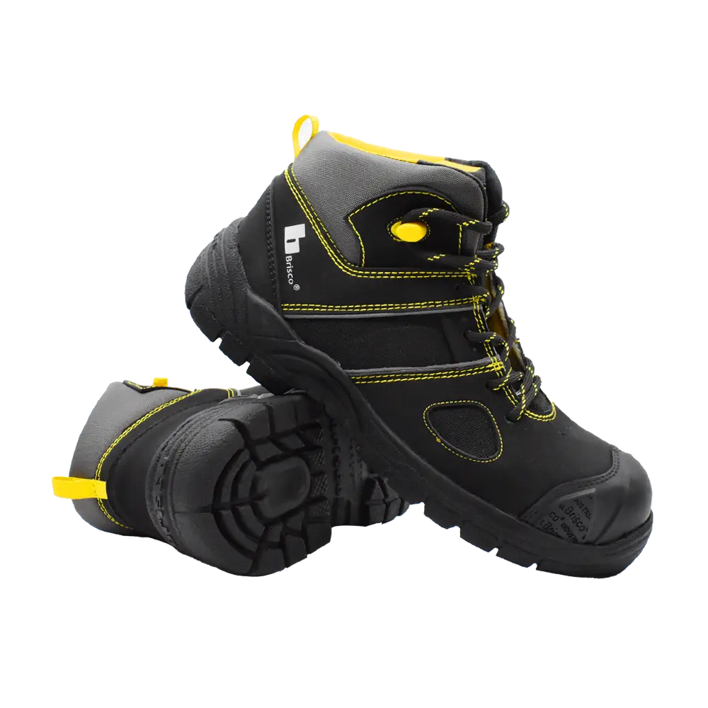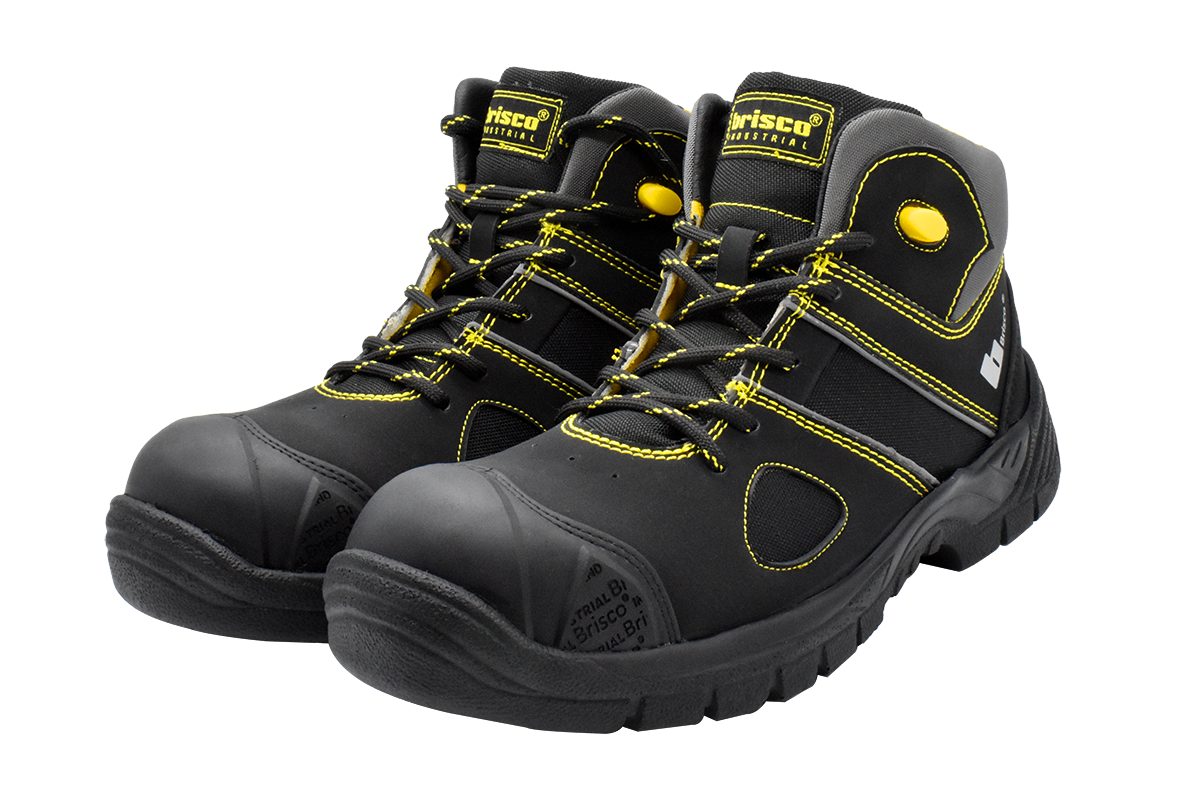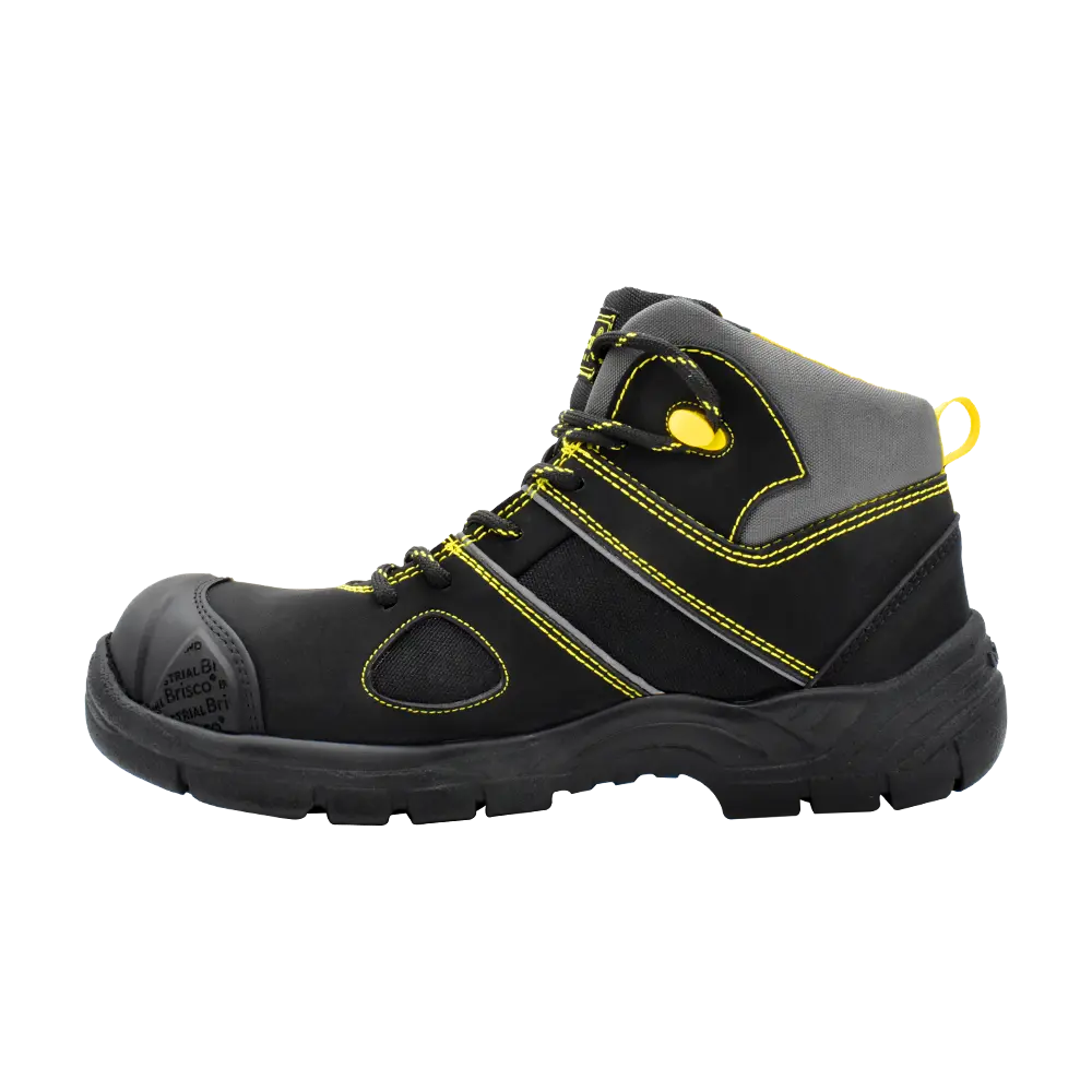 Calzado de seguridad ergonómico, dieléctrico tipo borceguí, color negro con vivos en amarillo, cuenta con doble protección en la puntera (resistente a abrasión).