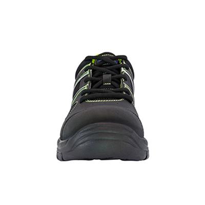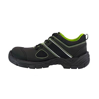 Calzado ergonómico dieléctrico tipo choclo, color negro con vivos en verde, cuenta con doble protección en la puntera.
