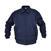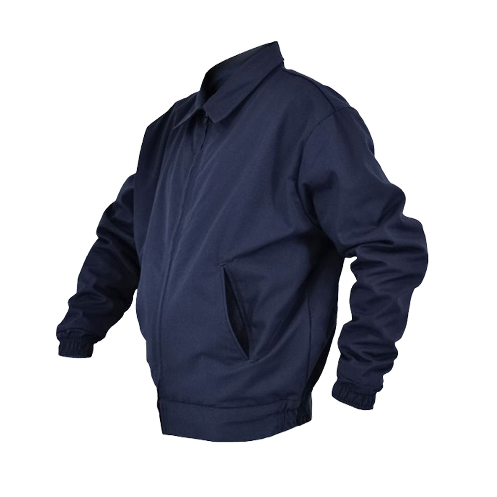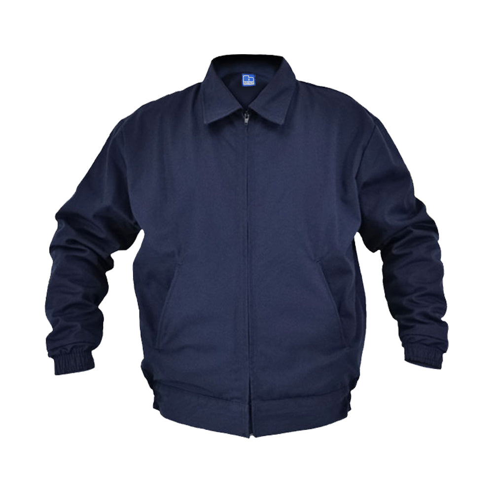 Chamarra casual en gabardina 100% algodón antiestática (9.03 oz / yd2 de peso) color azul marino en corte unisex,