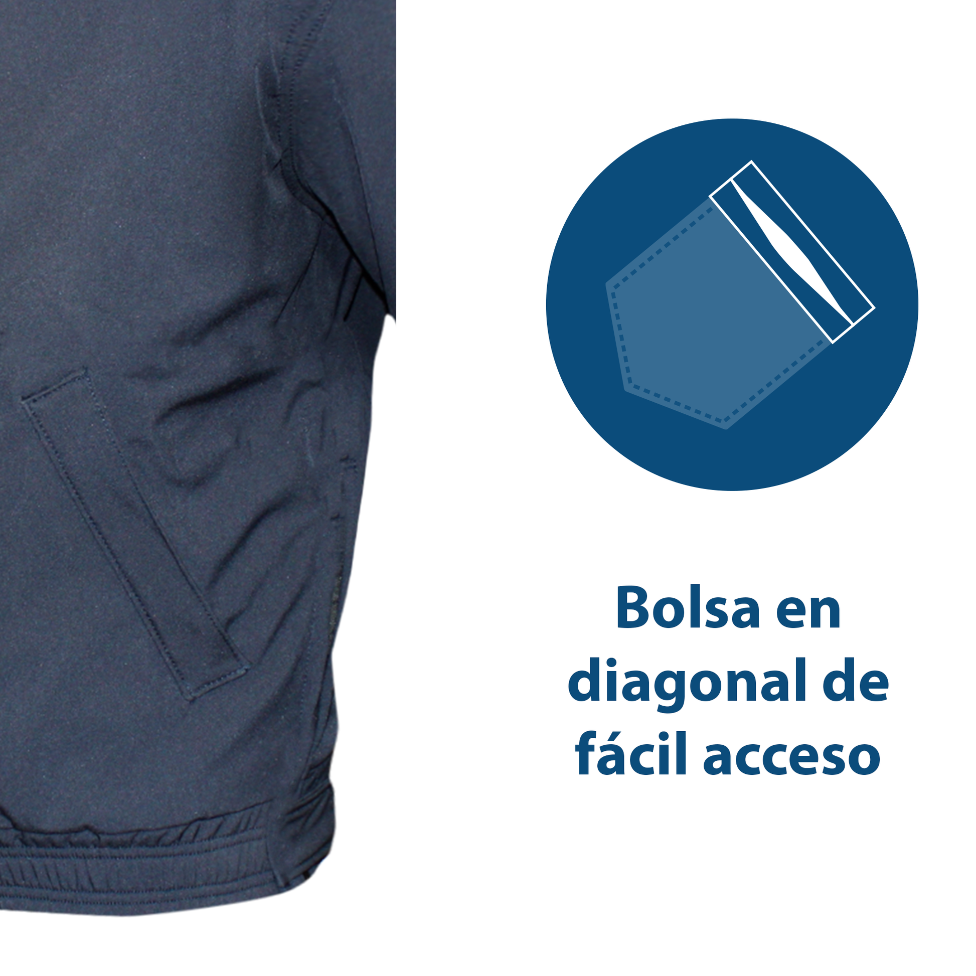 Posee un cierre de plástico al frente de alta resistencia antiestáticos, FORRO POLAR al interior adicionado con bolsa oculta. Costuras Reforzadas en mangas y costados en costuras dobles.
