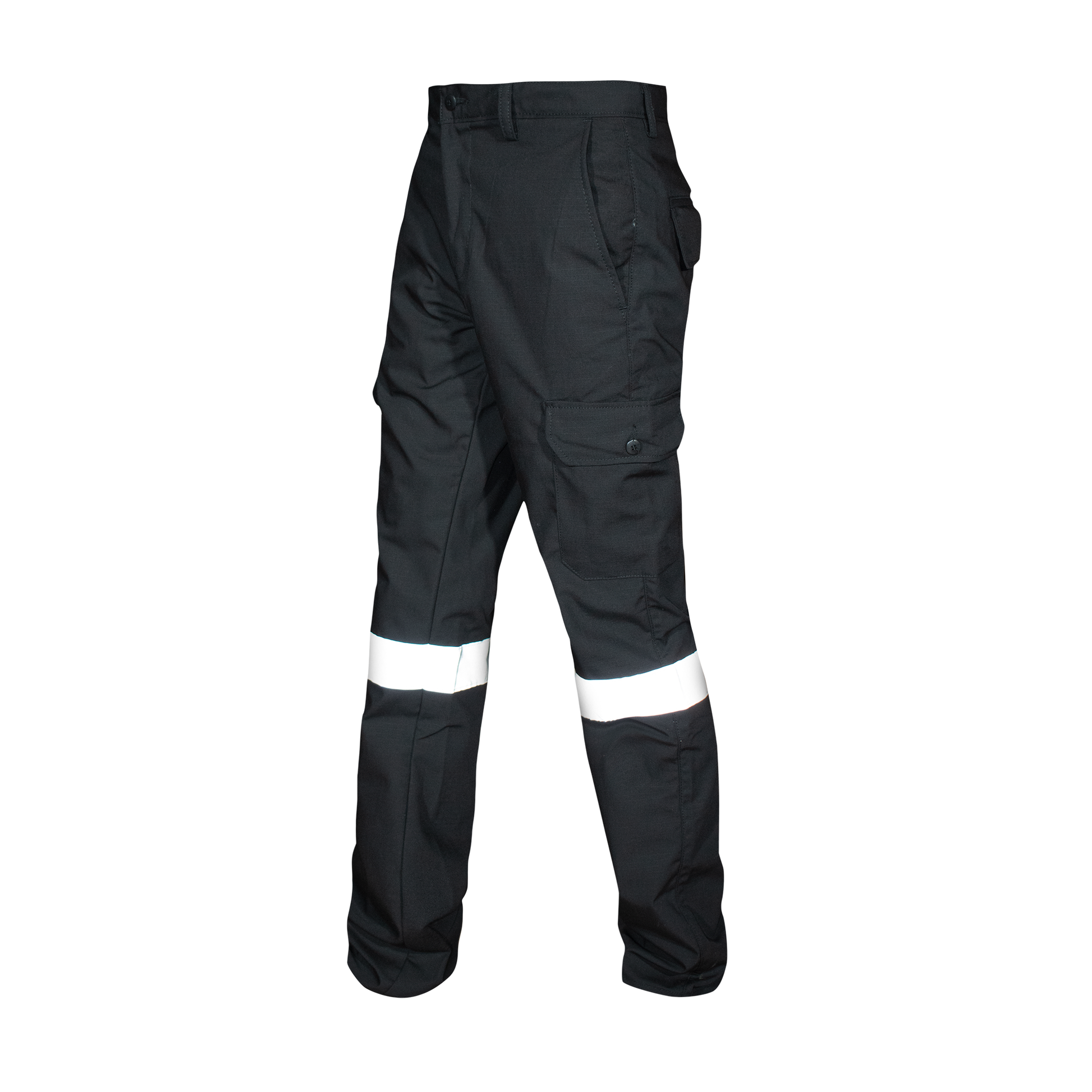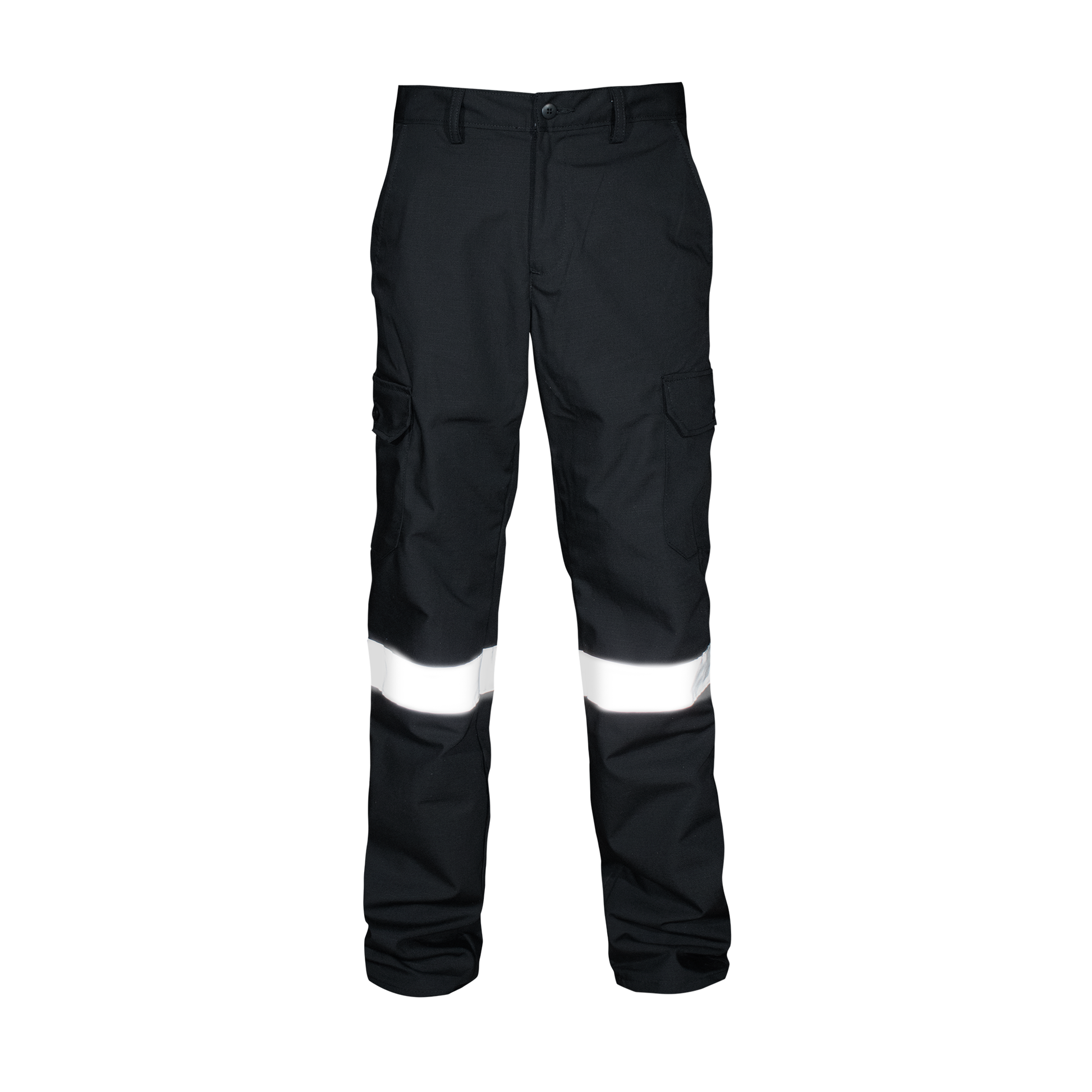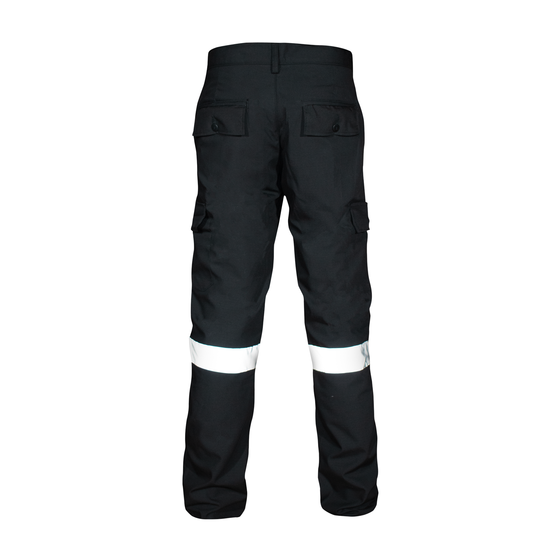 Cuenta con 6 Bolsas: 2 bolsas traseras de vivo, 2 bolsas delanteras en diagonal de fácil acceso y 2 bolsas laterales tipo cargo con cartera. Cinta reflejante plata de 2" debajo de rodillas.