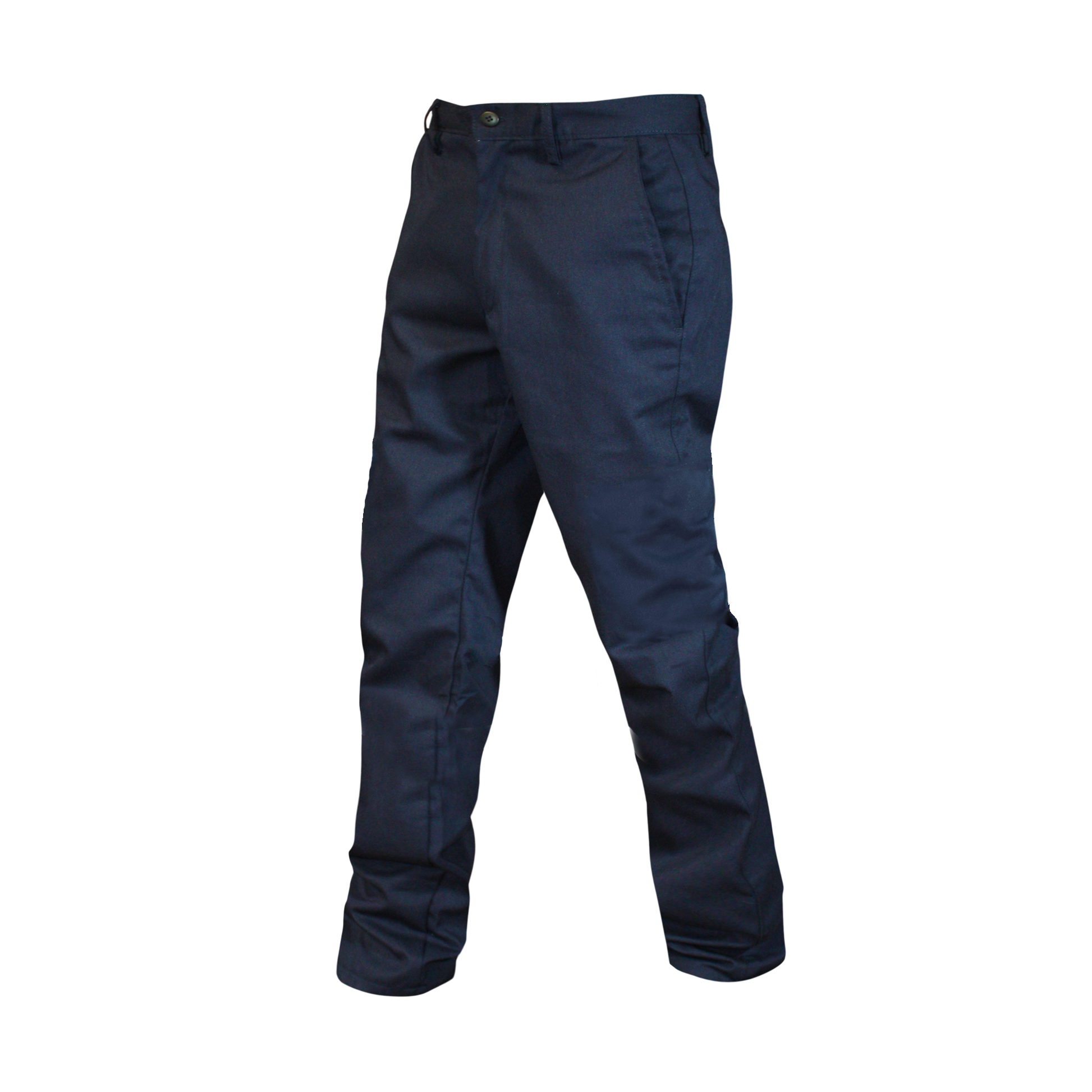Pantalón corte recto con 2 bolsas traseras de un vivo, 2 delanteras en diagonal, cie- rre plástico antiestático. Manta o pocketing interior en bolsas delanteras. 5 trabillas amplias en pretina. Bastilla en bajos.