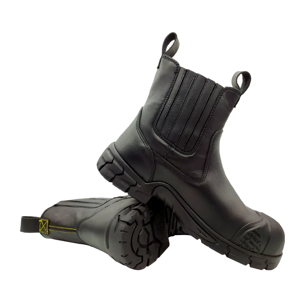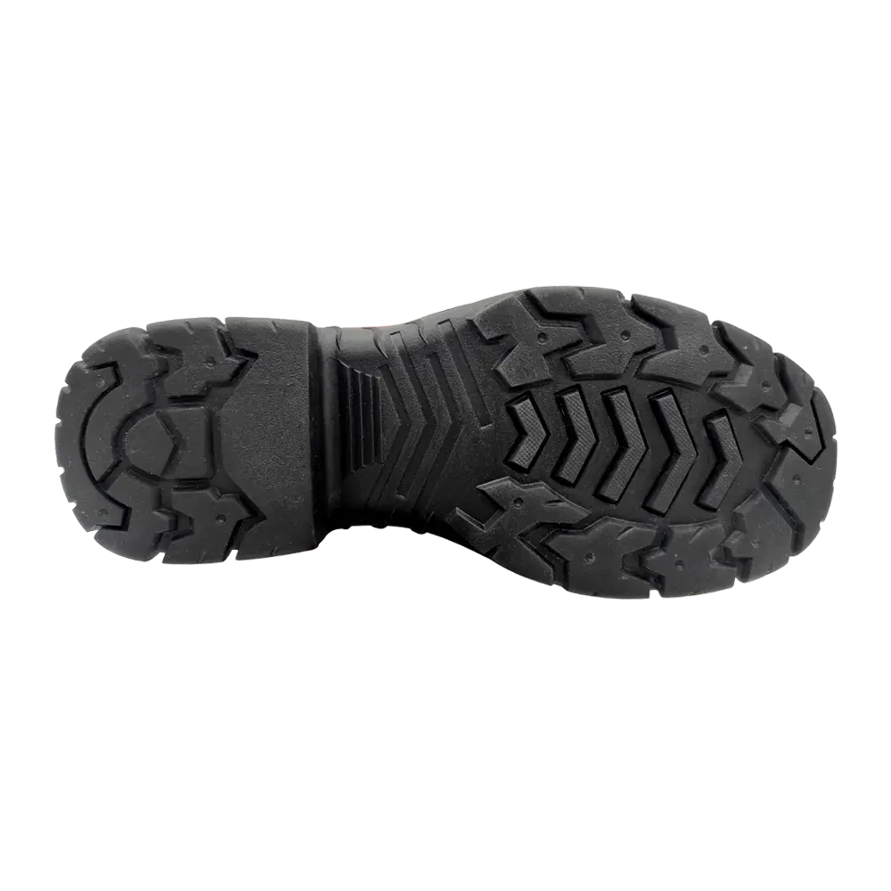 Calzado industrial ligero de uso rudo con suela antiderrapante robusta, ideal para suelos abrasivos o de desgaste, resistente a aceites, solventes y altas temperaturas.