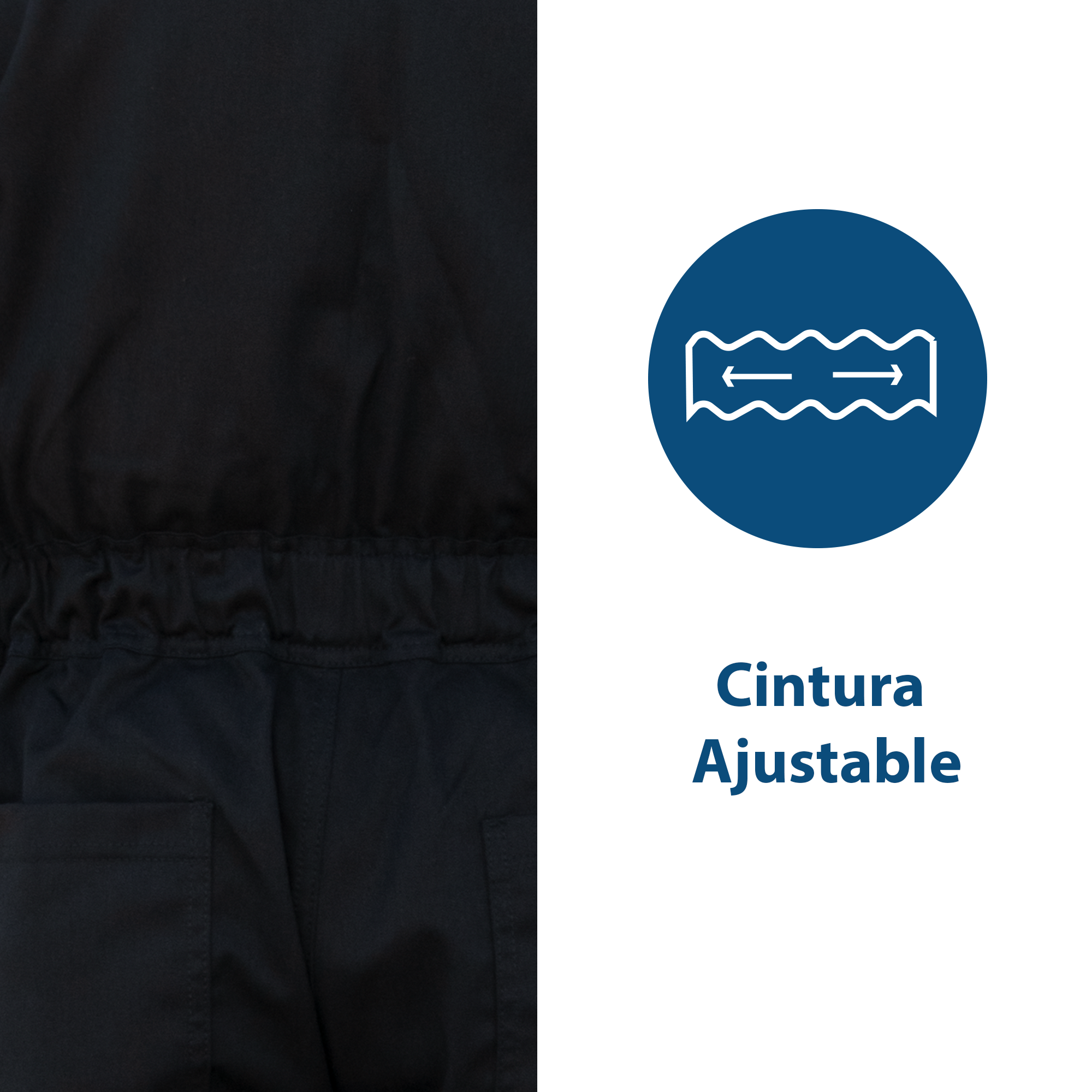 2 bolsas en camisa con bastillas y solapas internas en gabardina color verde 100% algodón, cuenta con cintas reflejantes en piernas color gris plata y cinturón de ajuste elástico oculto en pretina Ergo-Lumbar MR.