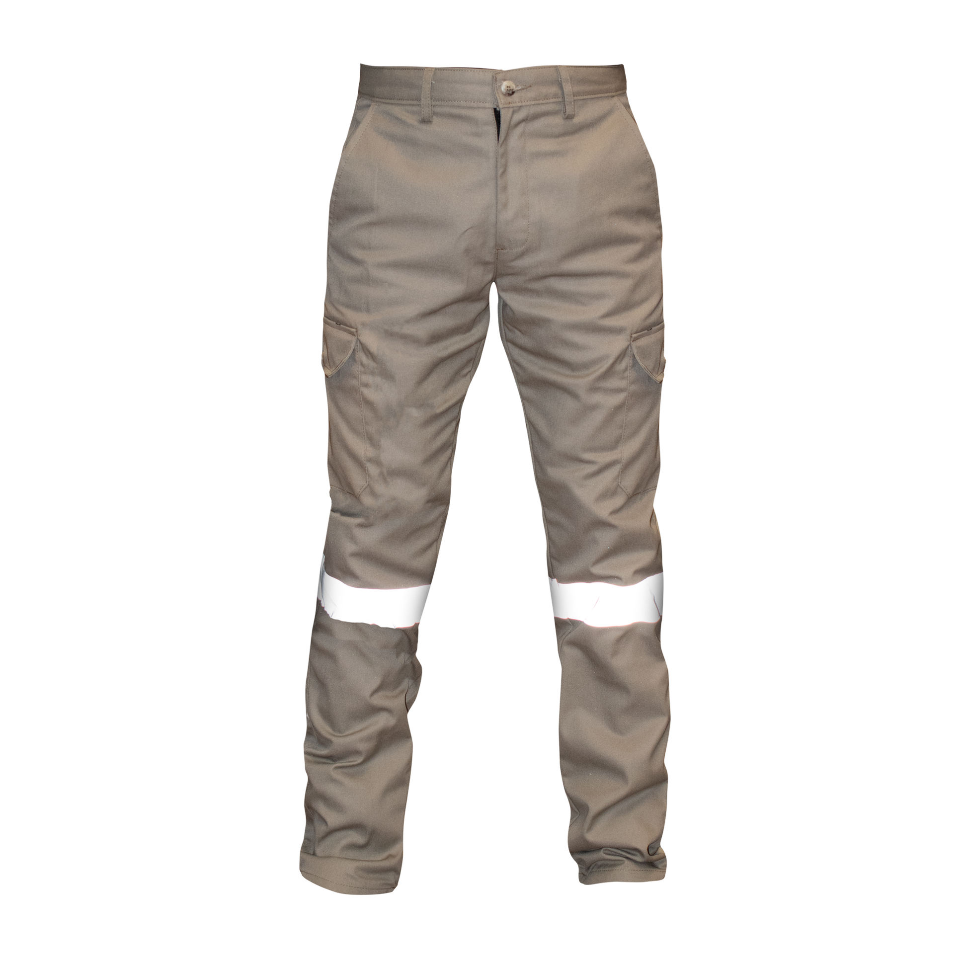Pantalón industrial tipo cargo en corte recto sin pinzas.
