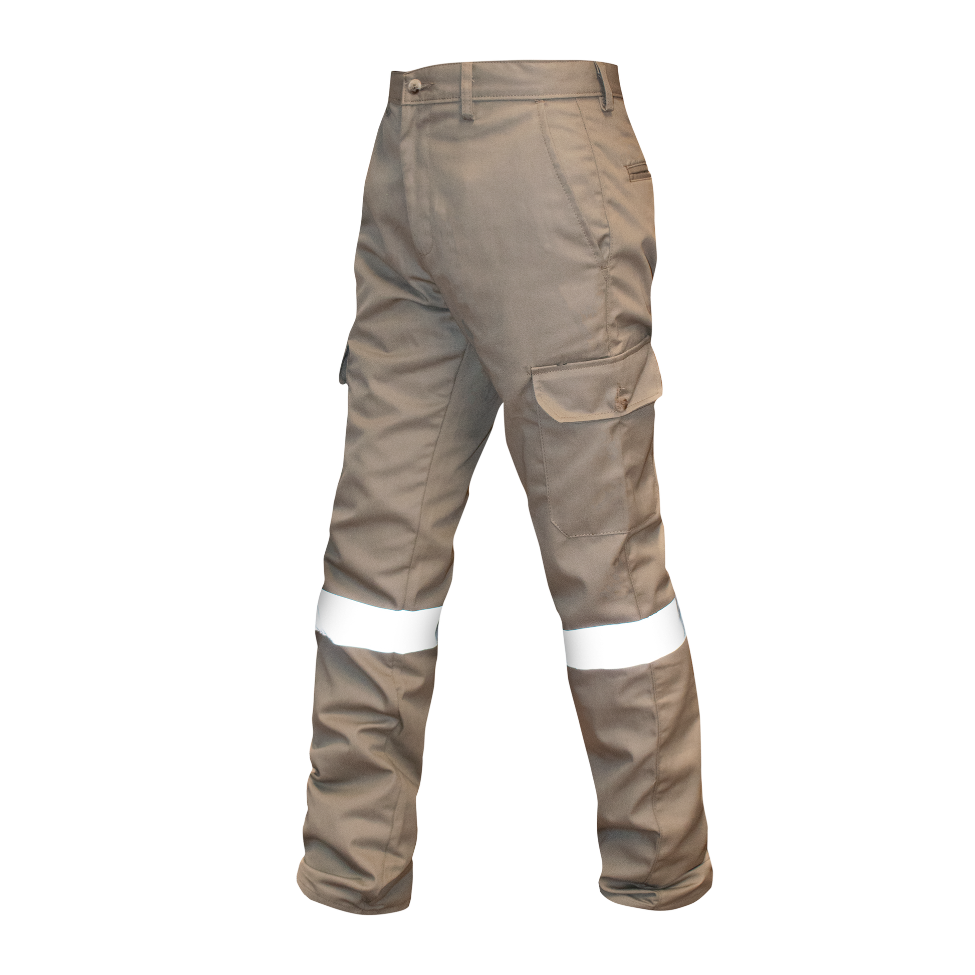 Cuenta con 6 Bolsas: 2 bolsas traseras de vivo, 2 bolsas delanteras en diagonal de fácil acceso y 2 bolsas laterales tipo cargo con cartera. Cinta reflejante plata de 2" debajo de rodillas.