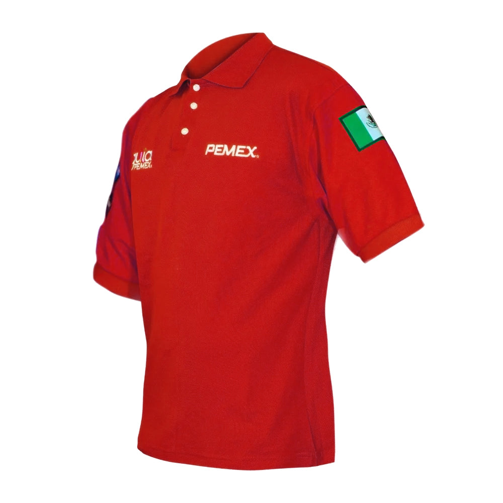 Playera polo piqué roja en manga corta para despachador de gasolinera (Nueva Imagen Pemex).